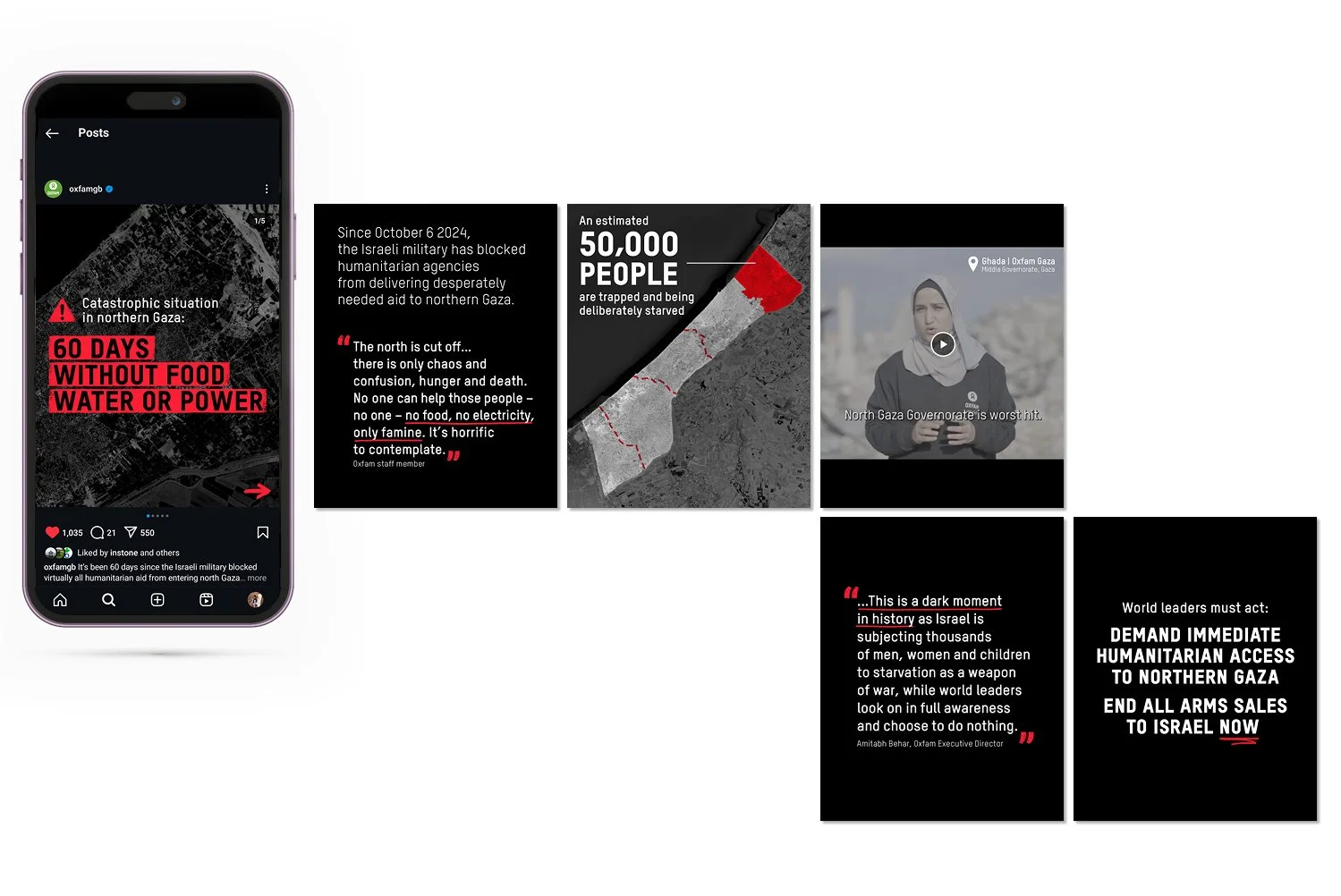 Over a year, I have been responsible for producing a continuous stream of paid ads for Oxfam GB’s Ceasefire and Stop Arming Israel petitions, alongside organic social media support.