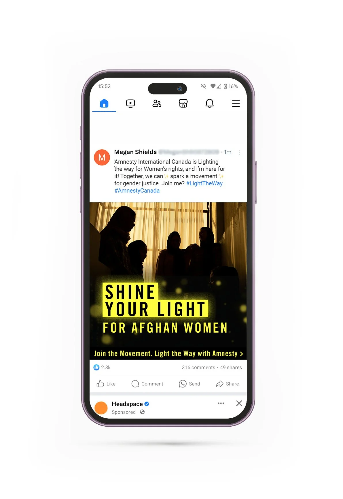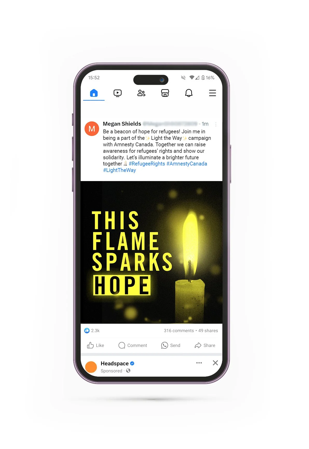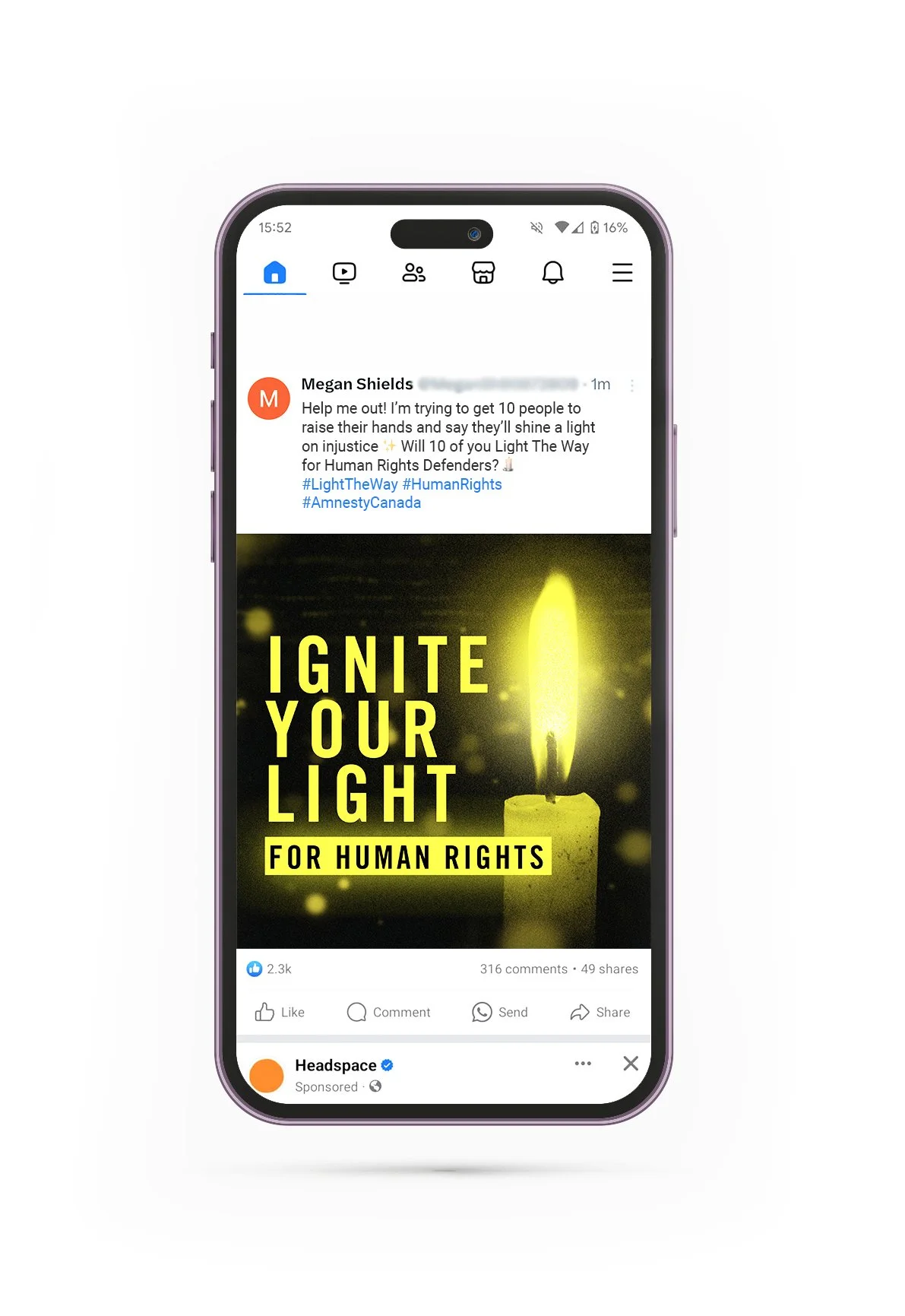 We created warm, empowering visuals focused on collective action, motivating the audience to take a simple action that could spark a movement. Strong use of Amnesty’s brand colors ensured immediate recognition and a clear connection to human rights advocacy.